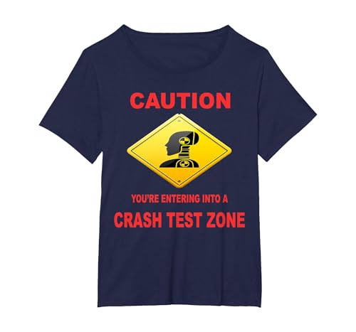 Caution You are Entering Into a Crash Test Zone Dummy Sign T-Shirt, Women, Navy Blue, XX-Large