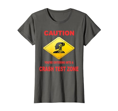 Caution You are Entering Into a Crash Test Zone Dummy Sign T-Shirt, Women, Slate Grey, X-Small
