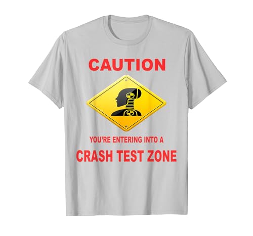 Caution You are Entering Into a Crash Test Zone Dummy Sign T-Shirt, Men, Silver Grey, Small