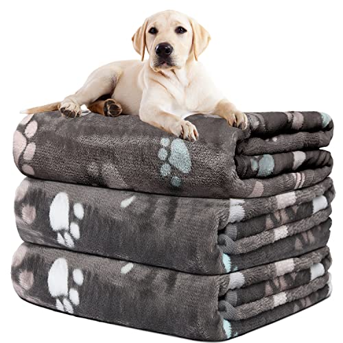 Rezutan Upgraded Dog Blankets for Large Dogs,3Pack Dog Cat Blankets Washable, Soft Pet Mat Throw Cover for Kennel Crate Bed, Cute Paw Pattern, Dog Blanket, Pet Blanket (Grey 31"x41")