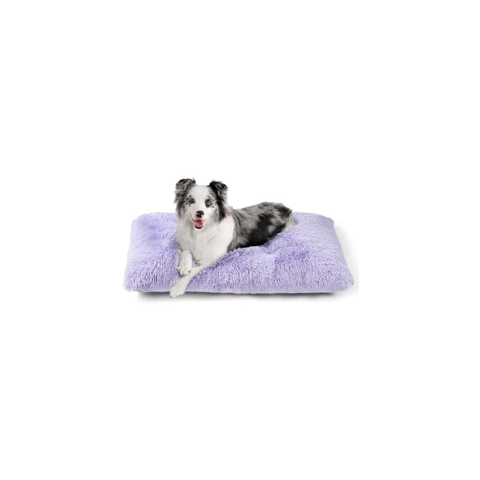 Fluffy Dog Crate Bed for Large Dogs â Plush Faux Fur Pad, Calming & Washable with Non-Slip Bottom, Purple