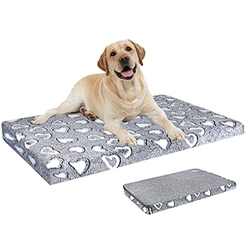 IEUUMLER Dog Bed Mat, Dual Purpose Washable Cushion, Soft Premium Plush Dog Crate Mat, Mattress for Small/Medium/Large Dogs and Cats FC014 (Gray, XL(106 * 71cm))
