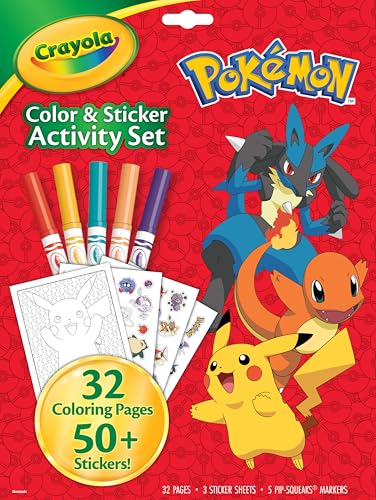 CRAYOLA Pokémon Colour & Activity Kit | Includes 32 Colouring Pages, 5 Markers and 3 Sticker Sheets ft. Ash, Pikachu and Friends | Activity Kit for Kids Ages 3+