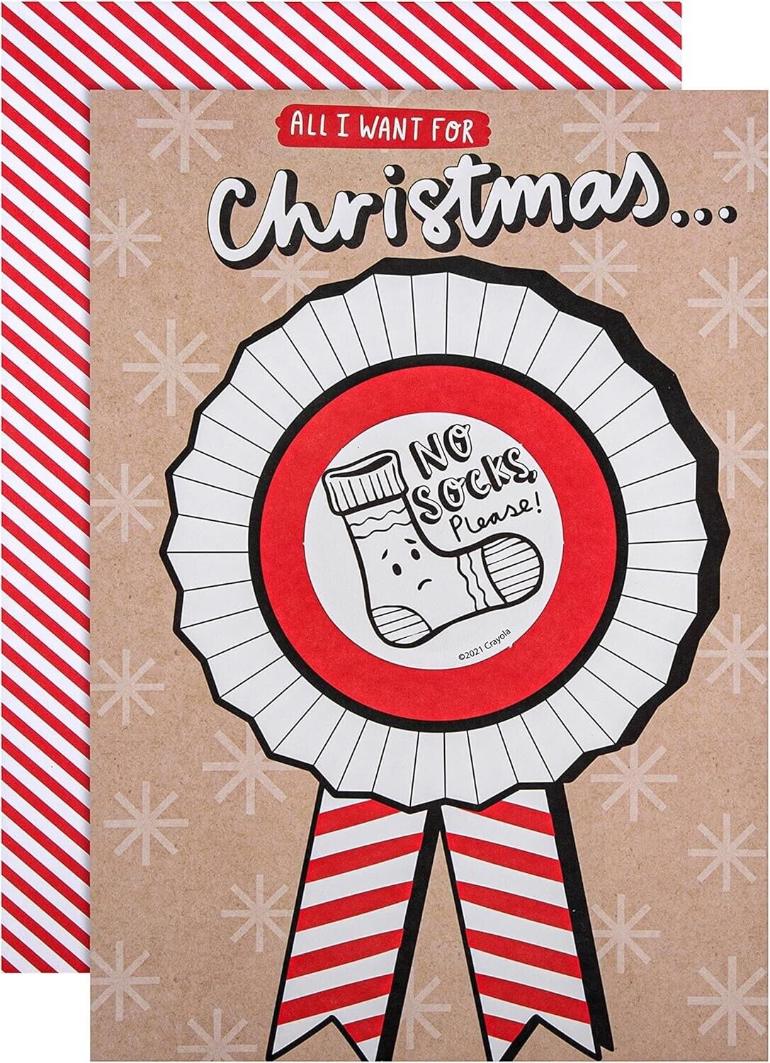 Christmas Card Crayola Colour Me Rosette Badge All I Want For Kids DIY NO Socks