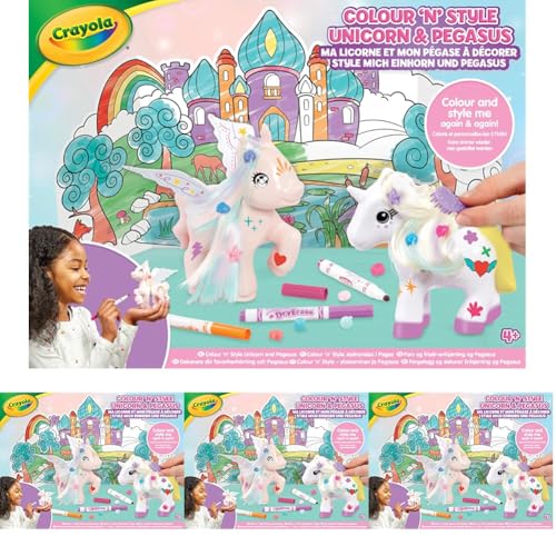 CRAYOLA Colour 'n' Style Unicorn & Pegasus Twin Pack | Colour Your Own Mythical Friends Again and Again | Includes 8 Washable Markers & Style Accessories | Ideal for Kids Aged 4+ (Pack of 4)