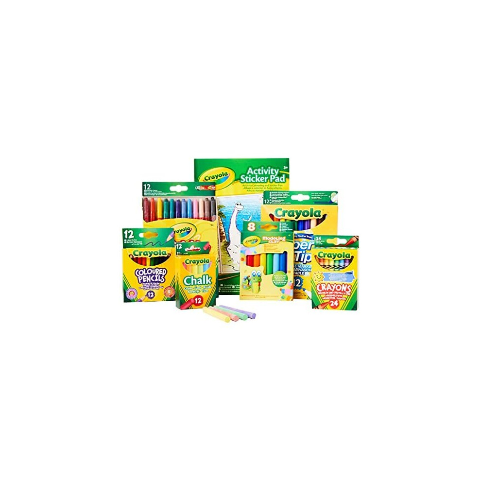 CRAYOLA Colour and Create Tub - Including Crayons, Markers, Pencils, Pens, Chalks, Colouring Book and Stickers, Kids Arts and Crafts, Ideal for Kids Aged 4+