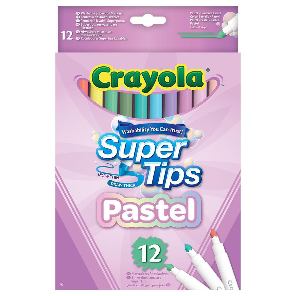 CRAYOLA Pastel SuperTips Washable Markers - Assorted Colours (Pack of 12), Premium Felt Tip Pens That Can Easily Wash Off Skin & Clothing, Ideal for Kids Aged 3+
