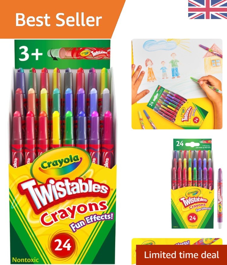 Non-Toxic 24-Pack Twistable Crayons - Regular, Neon & Rainbow for Young Artists