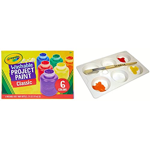 CRAYOLA Washable Paints - Assorted Colours (Pack of 6) | Perfect for Any Arts & Crafts Needs - Easily Washable | Ideal for Kids Aged 3+ and Major Brushes 6 Well Economy Palette