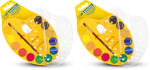 CRAYOLA Washable Watercolour Paint Palette | Includes 12 Watercolour Paints and 1 Paintbrush | Craft Kit for Kids | For Ages 3+ (Pack of 2)