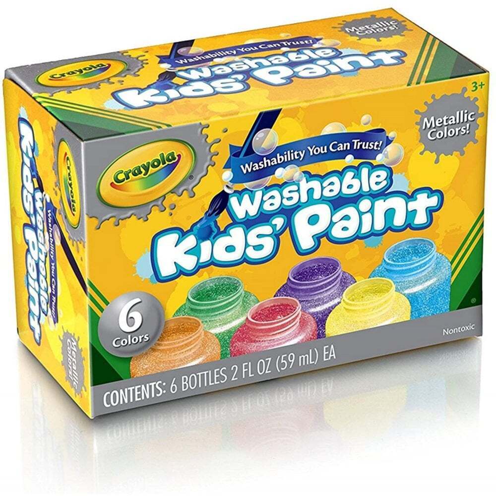 Crayola 6 Washable Metallic Kids' Paints - 59ml Bottles in Bright Colours