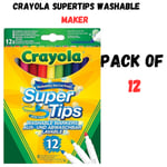 Crayola Supertips Felt Tip Pens - Washable Markers - Pack of 12 - FAST SHIPPING