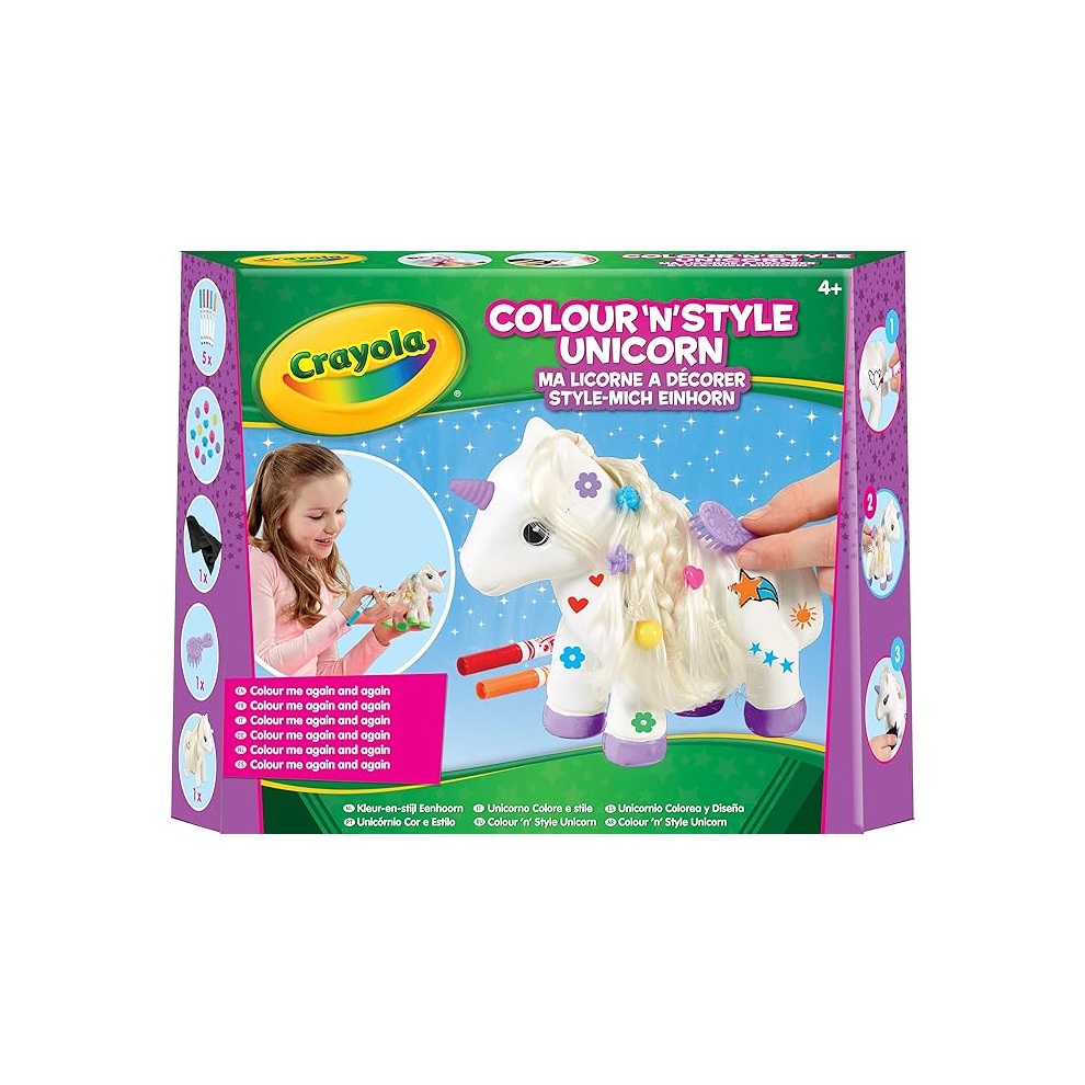 CRAYOLA Colour 'n' Style Unicorn | Colour Your Own Unicorn Again and Again | Includes Washable Marker Pens, Beads & Hairbrush | Ideal for Kids Aged 4+