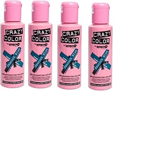 Crazy Color Semi Permanent Hair Colour 100ml - Peacock Blue Pack of 4