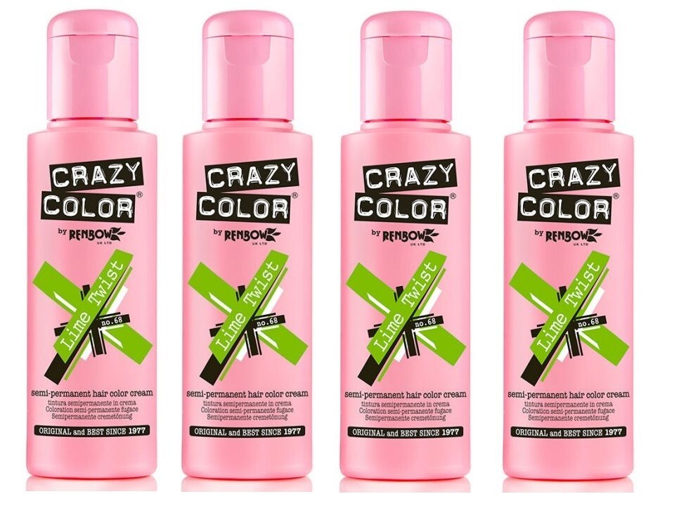 Crazy Color Semi-Permanent Hair Dye Colour Cream 100ml - Lime Twist Pack 4