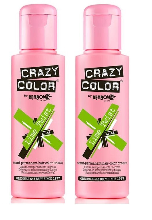 Crazy Color Semi-Permanent Hair Dye Colour Cream 100ml - Lime Twist Pack 2