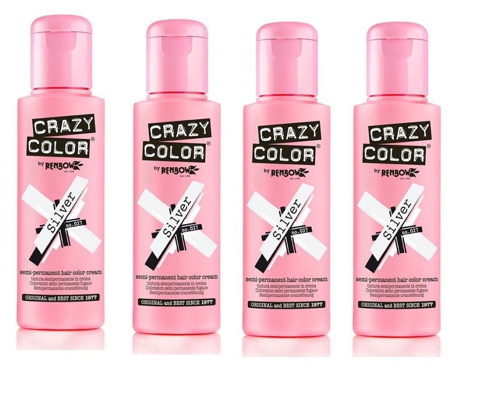Crazy Color Semi-Permanent Hair Colour Dye Cream 100ml - Silver Pack of 4