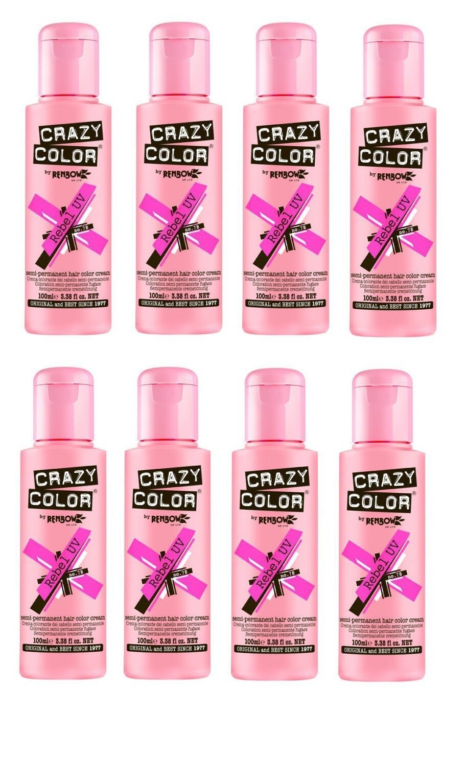 Crazy Color Semi Permanent Hair Colour Cream 100ml - Rebel UV Pack of 8
