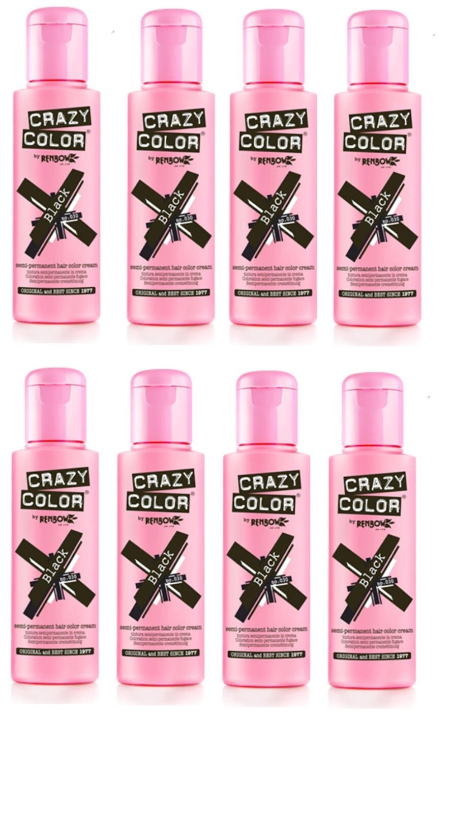 Crazy Color Semi Permanent Hair Colour 100ml - Black Pack of 8