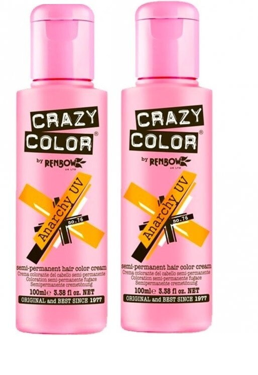 Crazy Color Semi Permanent Hair Colour Cream 100ml - Anarchy UV Pack of 2