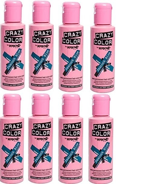 Crazy Color Semi Permanent Hair Colour 100ml - Peacock Blue Pack of 8