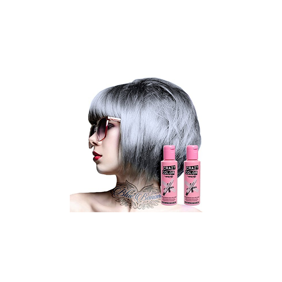 2Â x Crazy Colour Semi Permanent Hair Colour 100ml, , , silver,