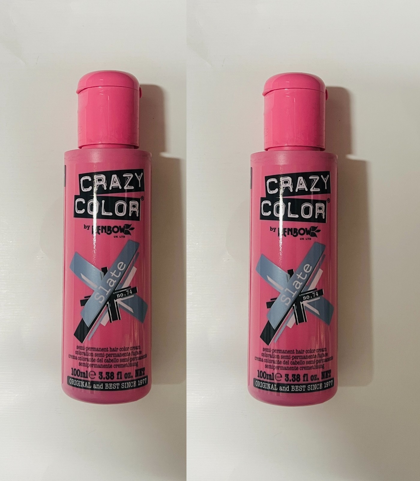 2 X Crazy Color Semi-Permanent Conditioning Hair Dye Colour Cream - Slate.