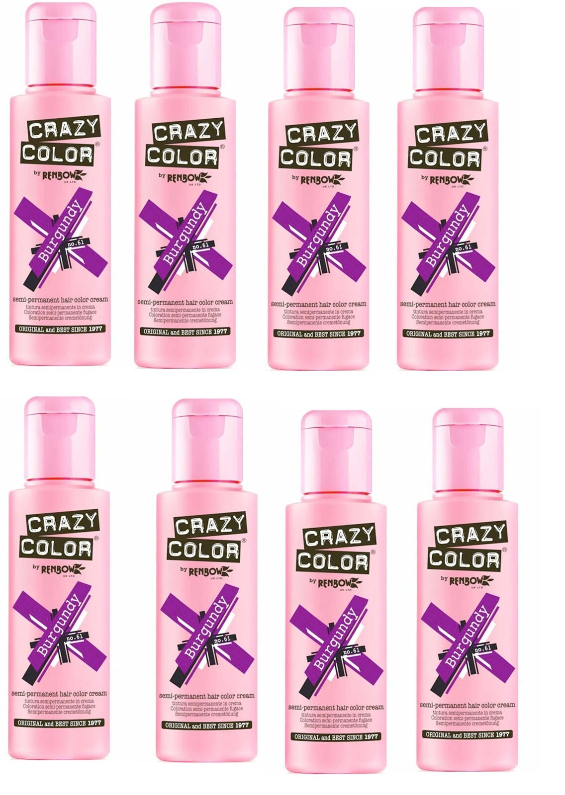 Crazy Color Semi Permanent Hair Colour 100ml - Burgundy Pack of 8