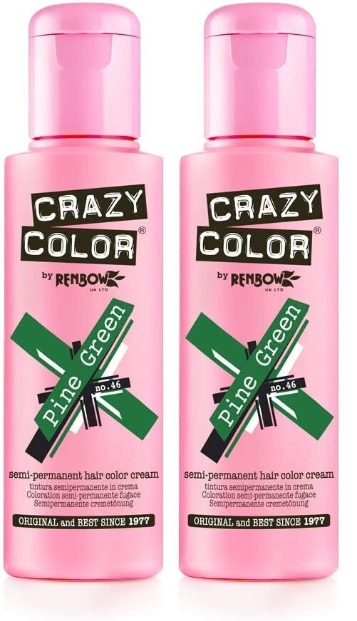 Crazy Color Semi Permanent Hair Colour 100ml - Pine Green Pack of 2