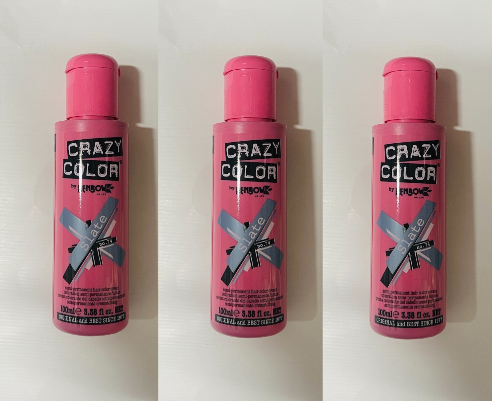 3 X Crazy Color Semi-Permanent Conditioning Hair Dye Colour Cream - Slate.