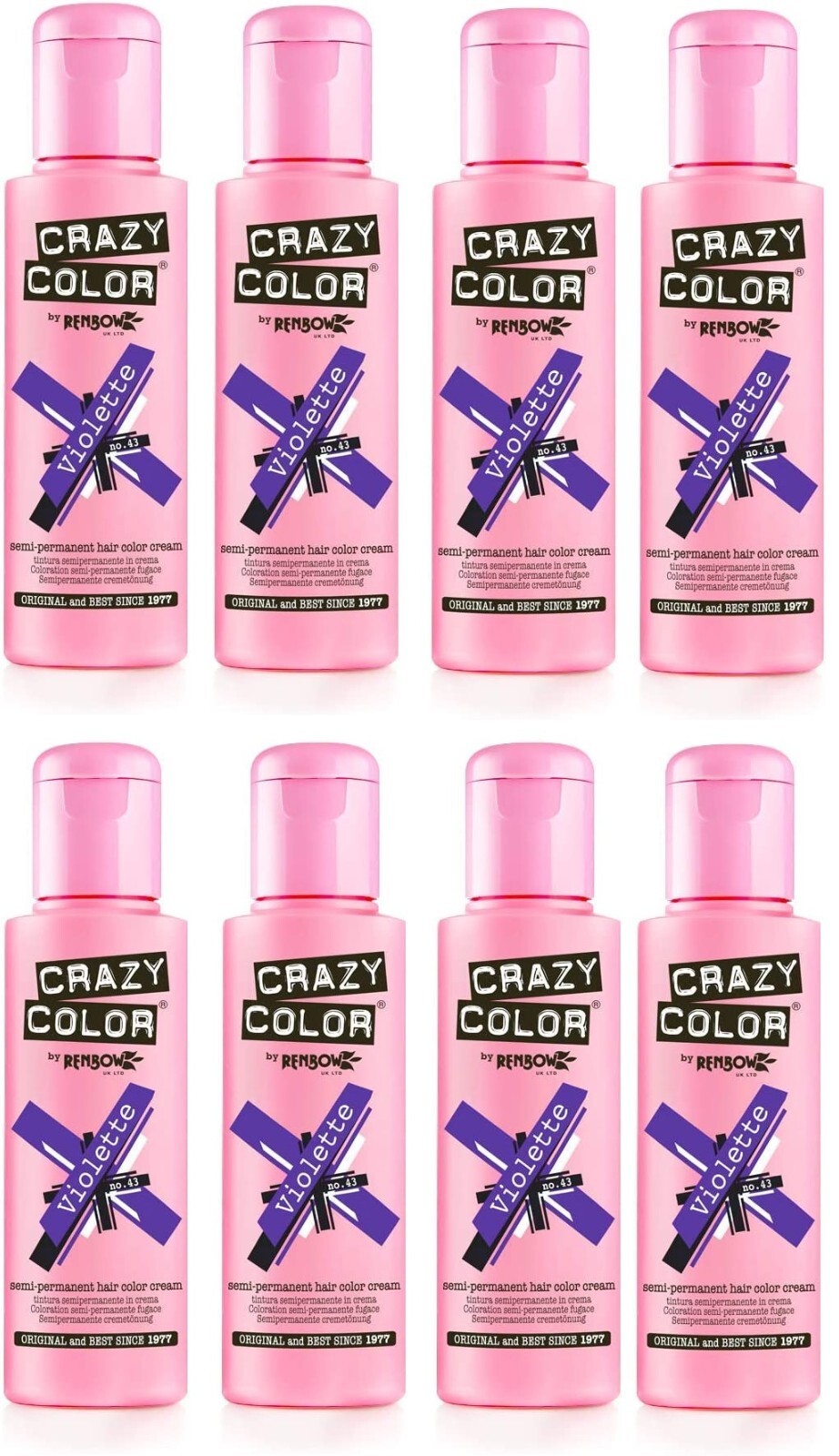 Crazy Color Semi Permanent Hair Colour 100ml - Violette Pack of 8