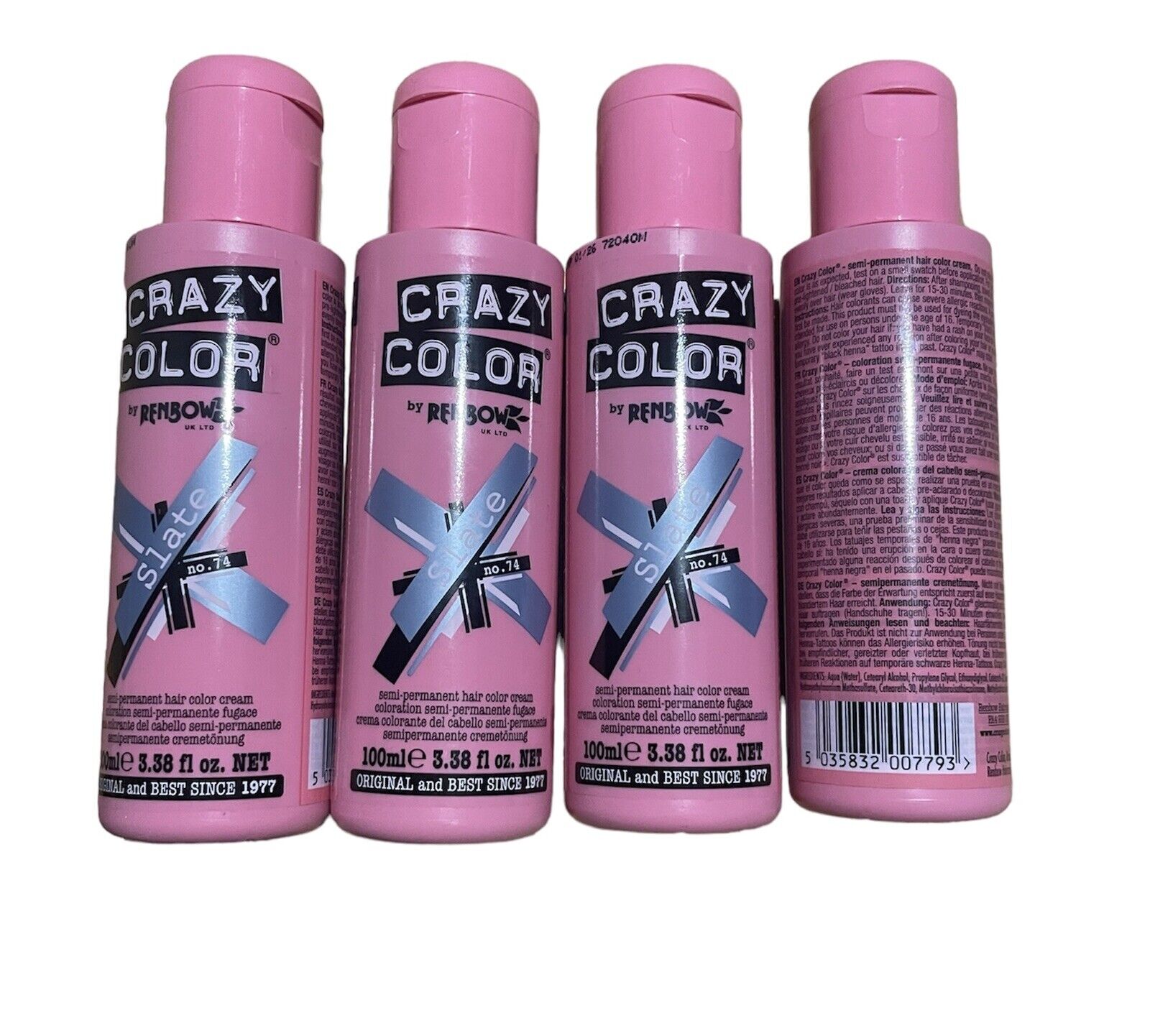 4 X Crazy Colour Semi-Permanent Hair Colour Cream Slate 74 By Renbowe