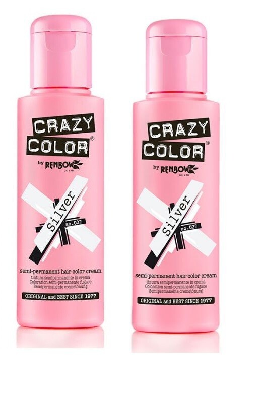 Crazy Color Semi-Permanent Hair Colour Dye Cream 100ml - Silver Pack of 2