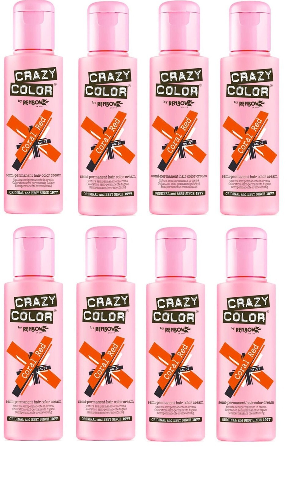 Crazy Color Hair Colour Cream 100ml Coral Red Pack of 8