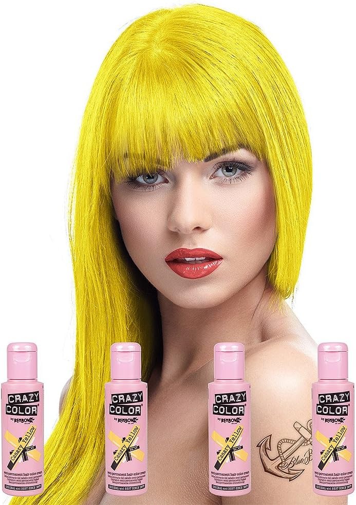 Crazy Colour Semi Permanent Hair Dye By Renbow Canary Yellow No.49 (100ml) Box