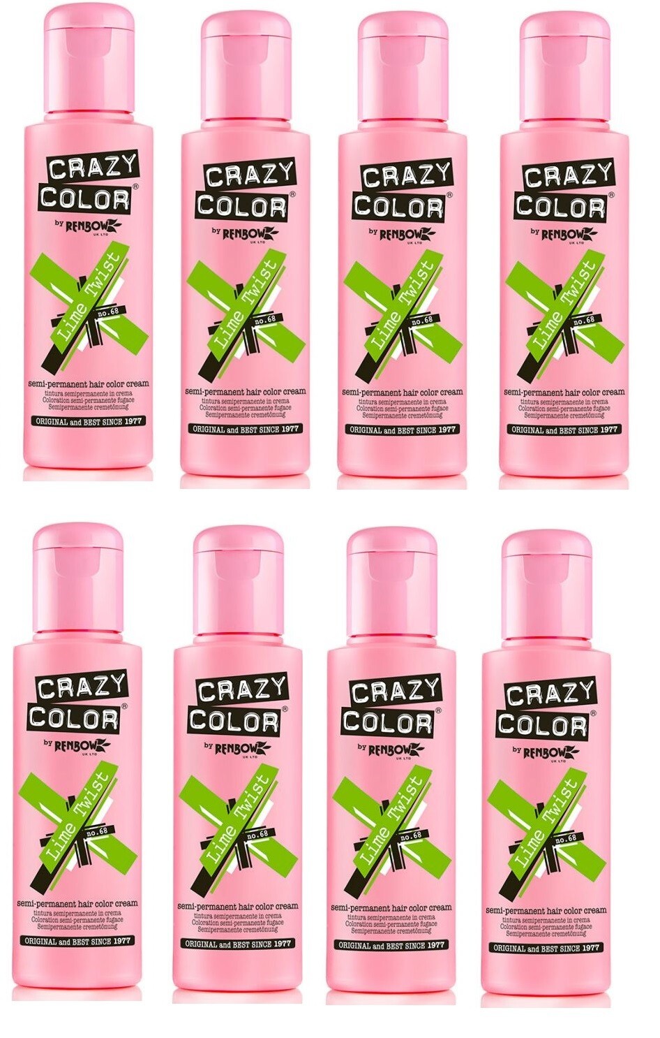 Crazy Color Semi-Permanent Hair Dye Colour Cream 100ml - Lime Twist Pack 8