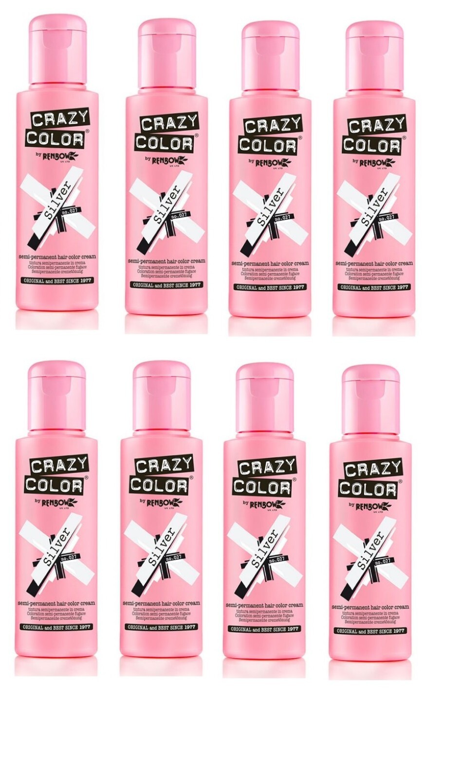 Crazy Color Semi-Permanent Hair Colour Dye Cream 100ml - Silver Pack of 8