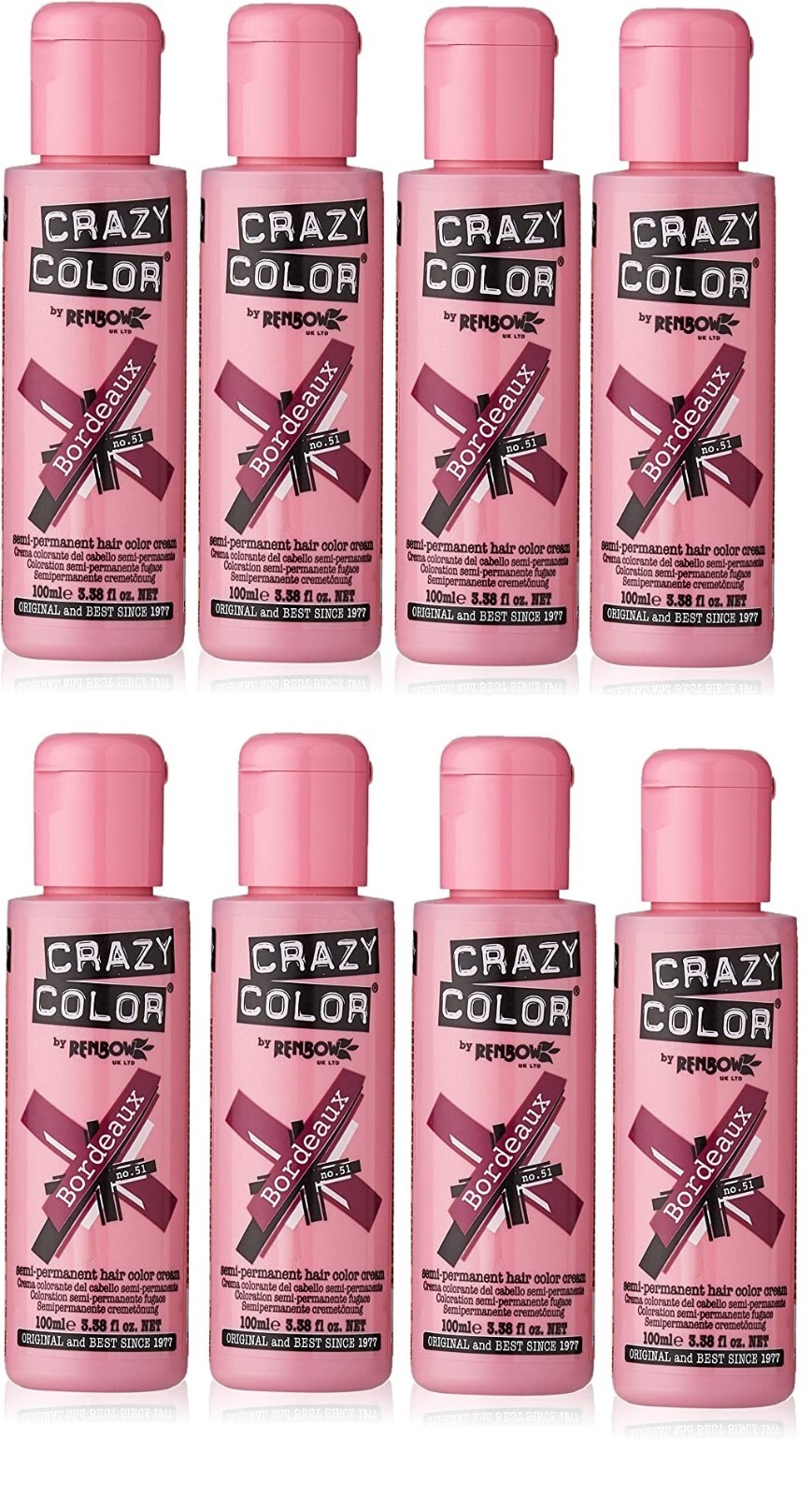 Crazy Color Semi Permanent Hair Colour 100ml - Bordeaux Pack of 8
