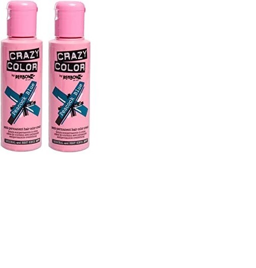Crazy Color Semi Permanent Hair Colour 100ml - Peacock Blue Pack of 2