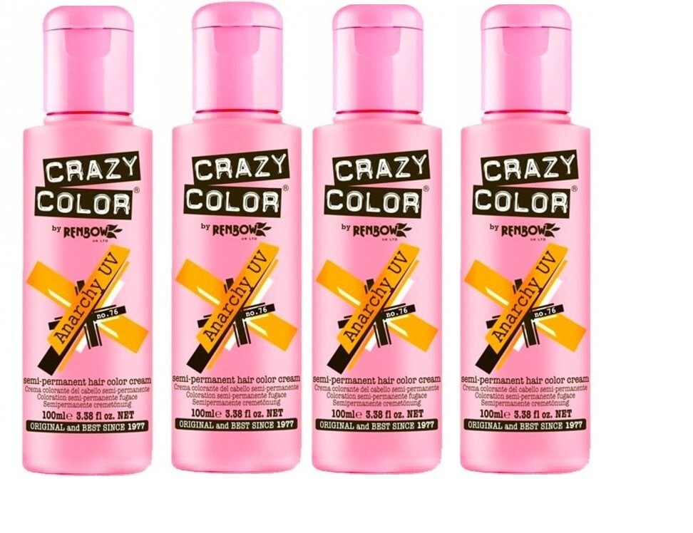 Crazy Color Semi Permanent Hair Colour Cream 100ml - Anarchy UV Pack of 4