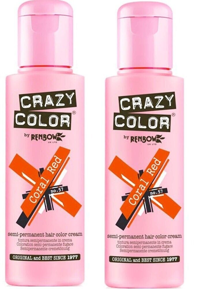 Crazy Color Hair Colour Cream 100ml Coral Red Pack of 2