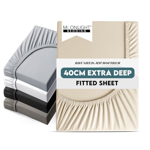 Moonlight Bedding Fitted Sheet 40 Cm Extra Deep Pocket Bed Sheets 16 inch Ultra Soft Bottom Sheet Brushed Microfiber Breathable Shrinkage and Fade Resistant (Cream, Double)