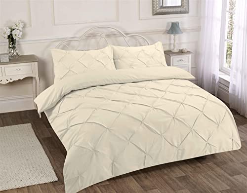 Homespace Direct Luxury Pintuck Duvet Cover Set Bedding Cream Double