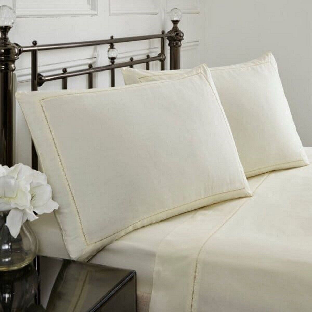 Cream Bedding Set Double Fitted Flat Sheet Pillow Case Linen Decorative Trim
