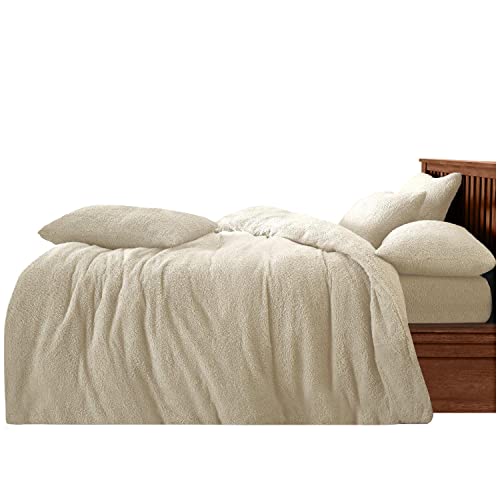 Brentfords Cream Teddy Fleece Duvet Set, Double Teddy Fleece Bedding Set Quilt Cover Double Winter Warming Duvet Covers with Pillowcases Soft Fluffy Comfy