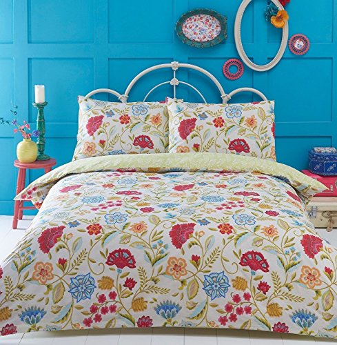 Irvine Double Bed Duvet Cover and 2 Pillowcases Set Bedding, Bed Set, Cream, Blue, Red, Floral, Retro, Cream