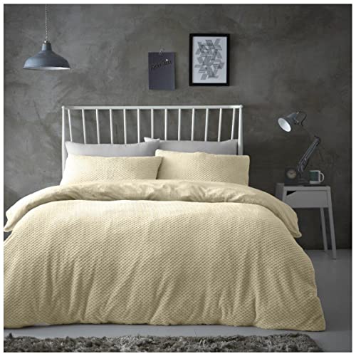 GC GAVENO CAVAILIA Popcorn Double Duvet Set Cream, Honeycomb Waffle Weave Bedding, 3 Piece Teddy Flannel Fleece Reversible Bedlinen, Easy Care DuvetCover Bedset, 1 Quilt Cover and 2 Pillow Cases