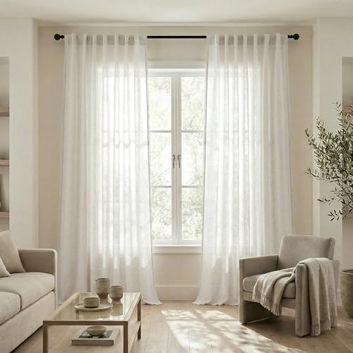 Linen Curtains 84 Inch Length 2 Panels Set,Back Tab/Rod Pocket Neutral Farmhouse Flax Semi Sheer Curtain Drapes 84 Inches Long for Living Room Bedroom,Cream Ivory,Cortinas De Lino Para Sala
