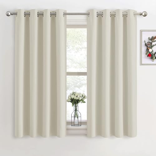 PONY DANCE Eyelet Beige Curtains - Thermal Insulated Privacy Energy Saving Curtains & Drapes, Super Soft Cream Noise Reducing Drapes for Kid's Bedroom Living Room, 46 x 60 Inches, 2 Panels