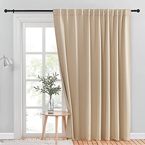 NICETOWN Blackout Sliding Glass Door Curtains, Patio Door Blinds, Luxury Home Room Darkening Curtains for Villa/Hall, Slider Blinds for Bedroom (Cream Beige, 100"x 84")